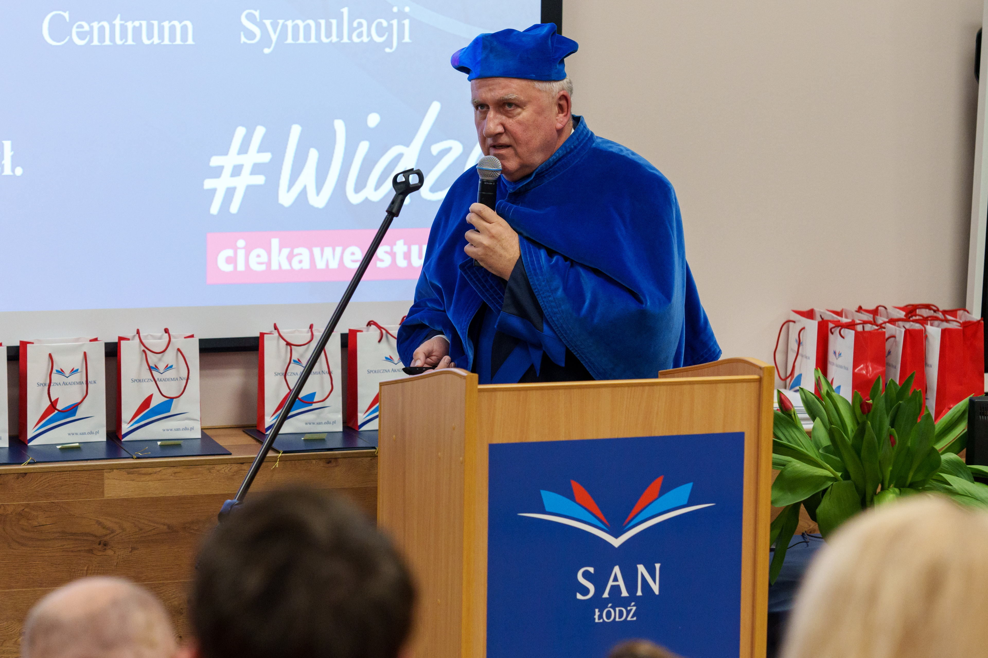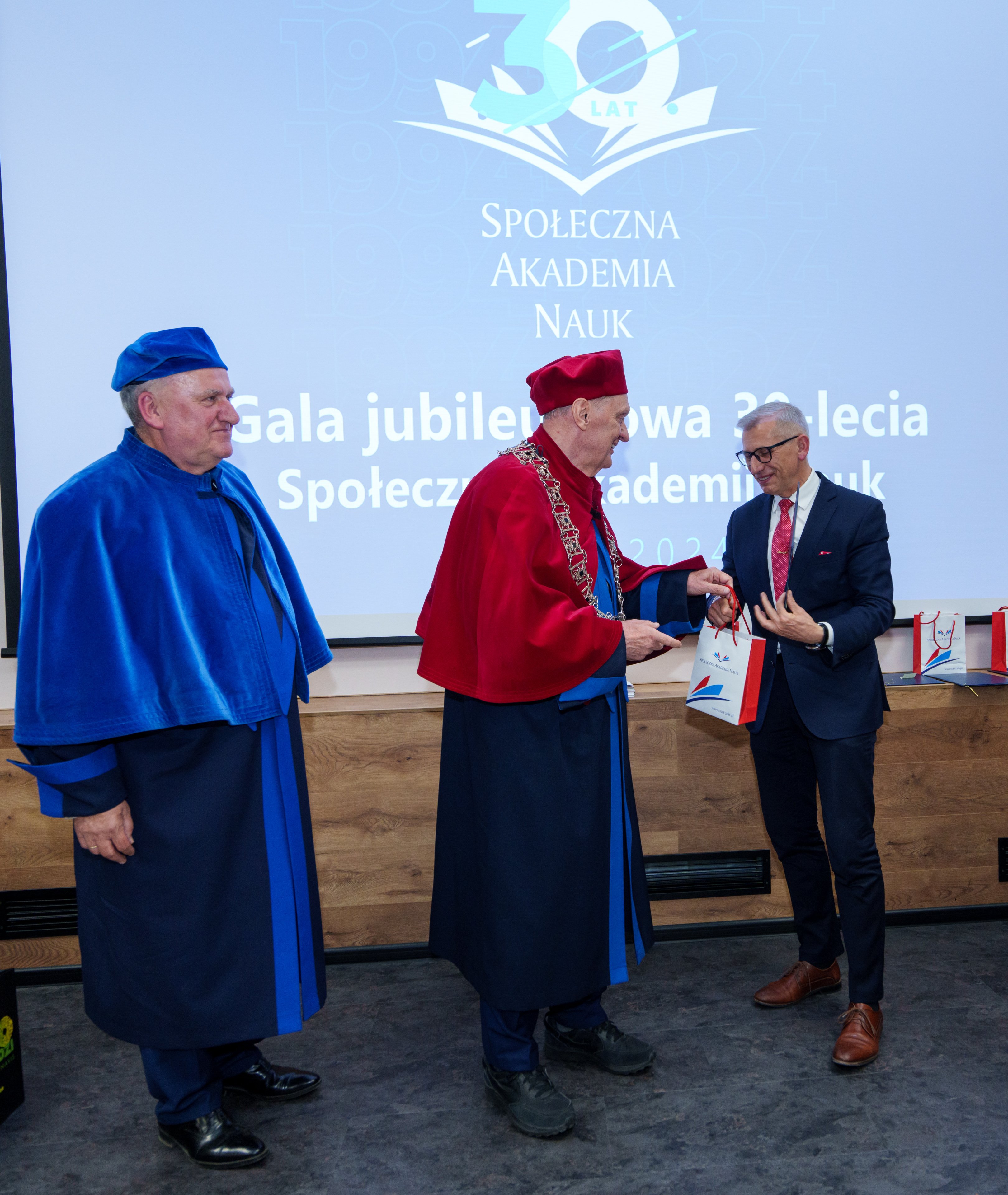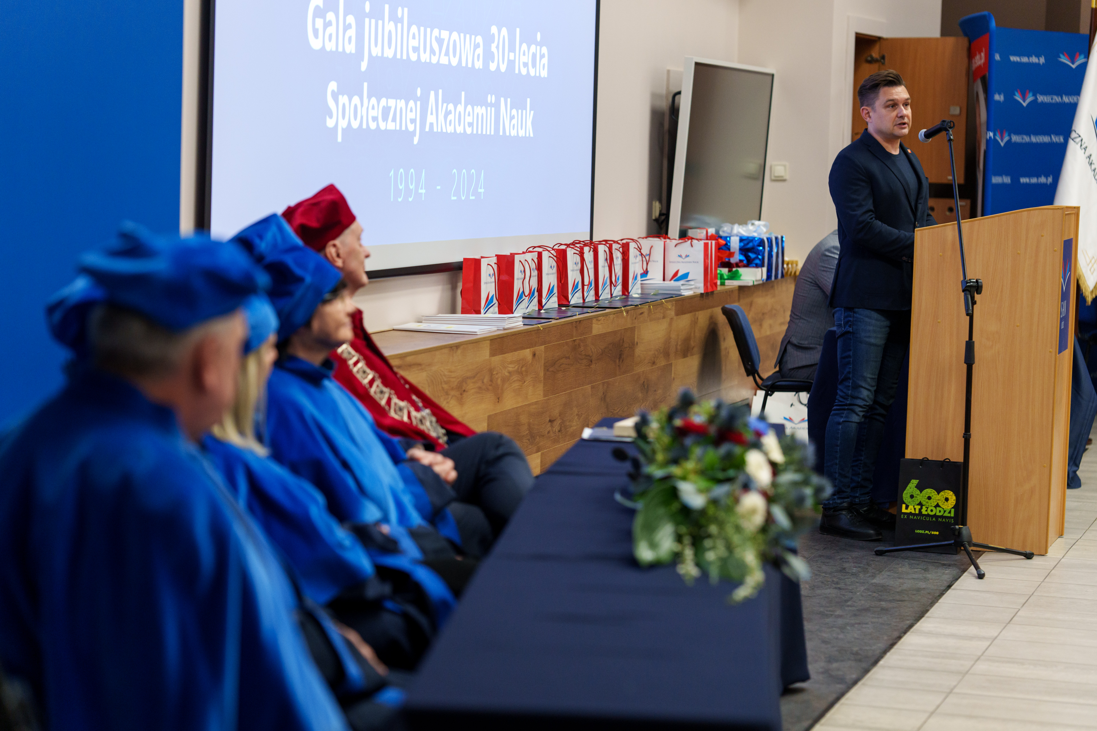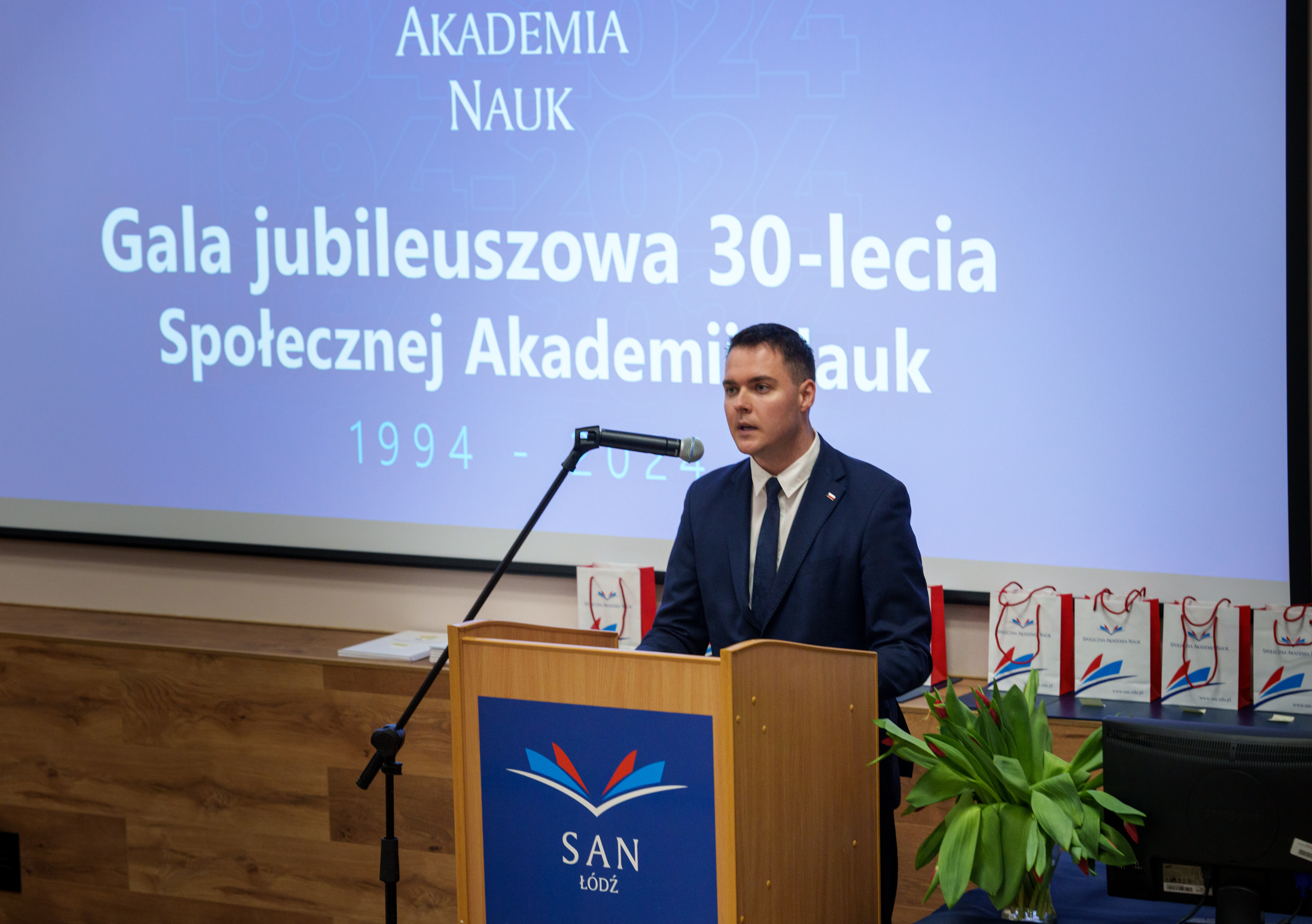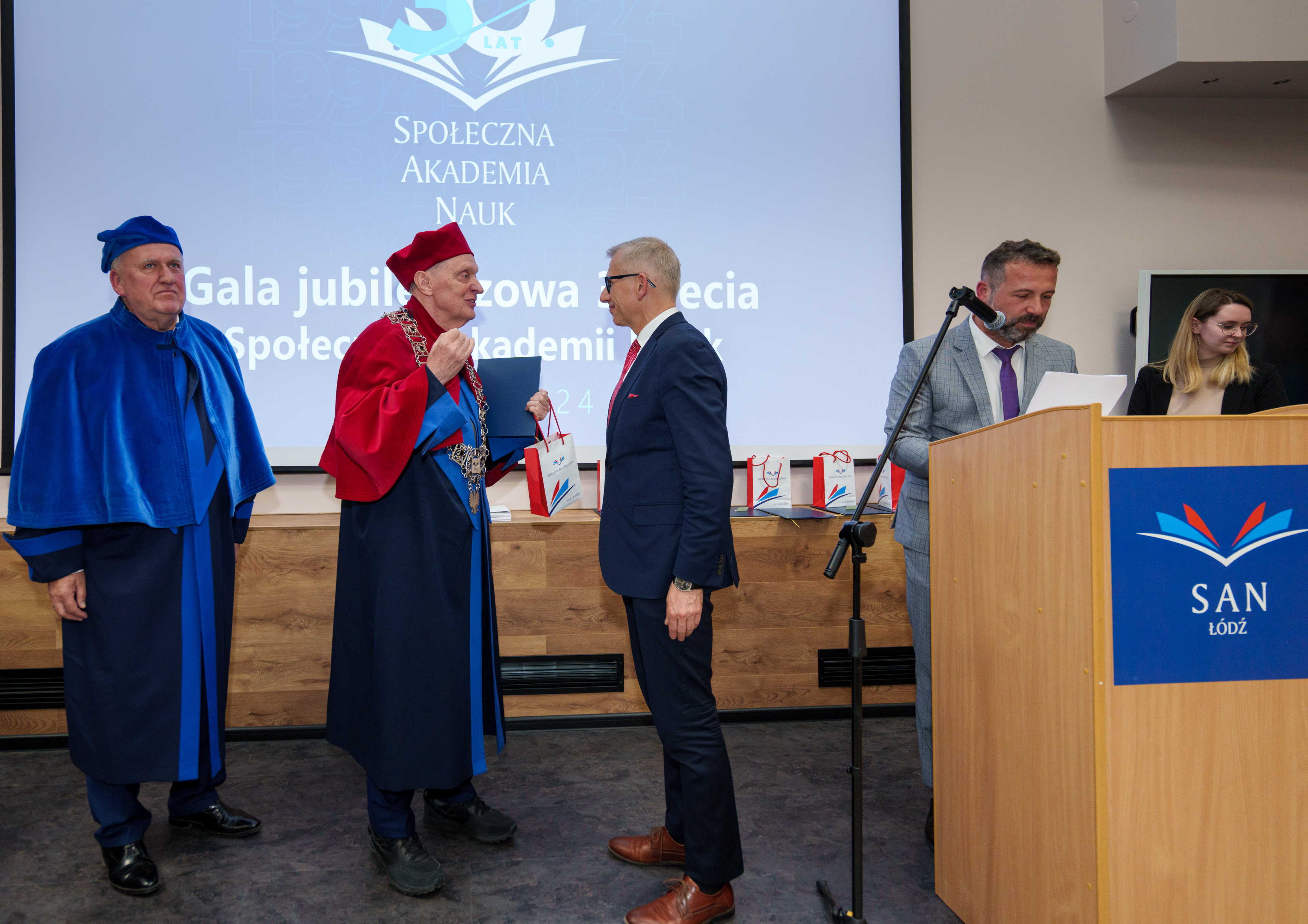 Gala rozpoczęła się od wprowadzenia orszaku profesorskiego i sztandaru uczelni. Uroczystość prowadził dr Łukasz Prysiński, prof. SAN, który serdecznie powitał zgromadzonych gości. Następnie głos zabrał Rektor Społecznej Akademii Nauk, dr hab. Roman Patora, prof. SANpodkreślając znaczenie 30 lat pracy, rozwoju i wkładu uczelni w edukację i naukę w Polsce.