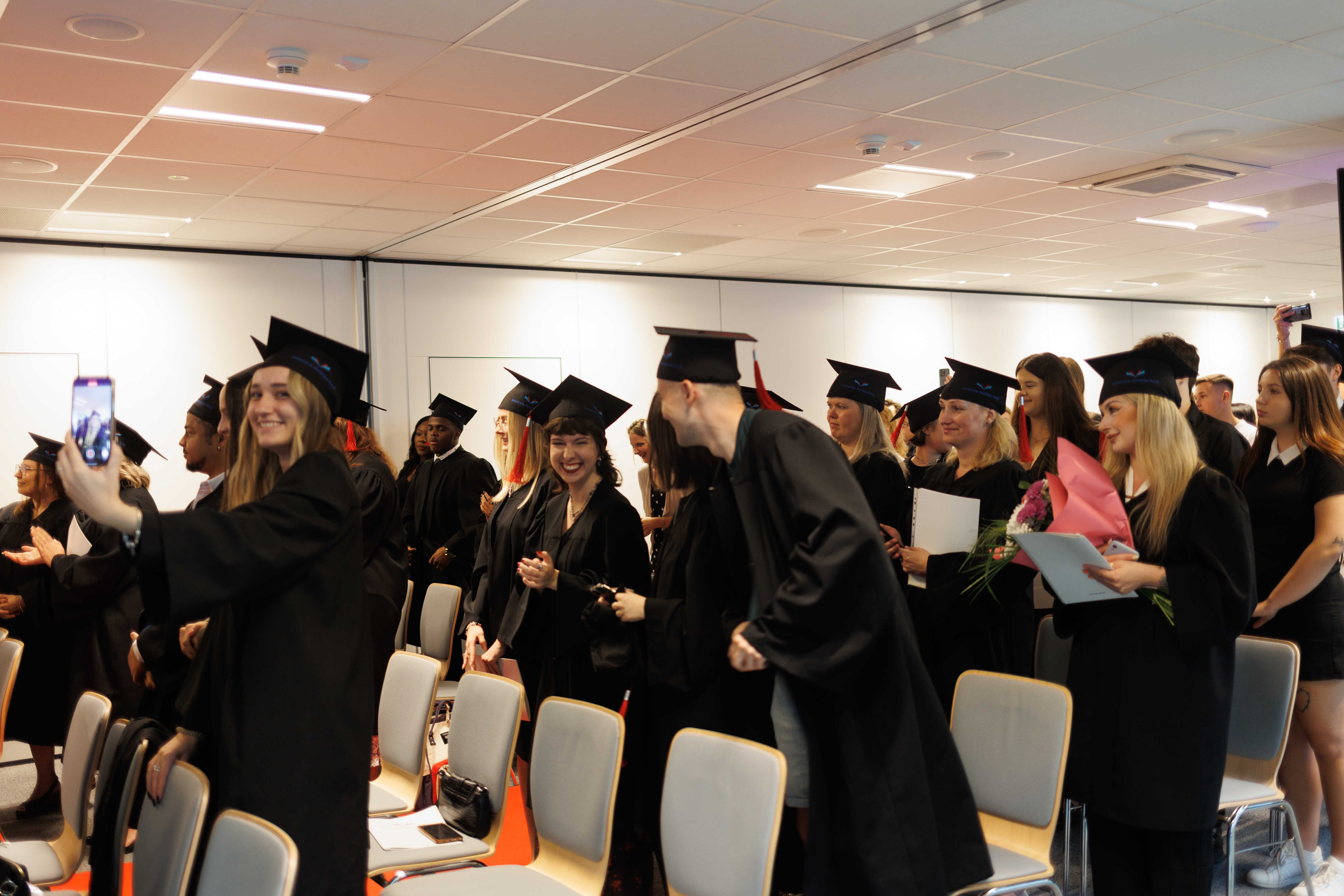 Atmosfera podczas ceremonii była niesamowita. Rodziny, przyjaciele i wykładowcy zgromadzeni na wydarzeniu dzielili się uściskami, gratulacjami i wzruszeniem z powodu kolejnego pokolenia absolwentów, gotowych podjąć wyzwania świata. Wykładowcy wyrazili swoje podziękowania wszystkim absolwentom za ich wysiłek, poświęcenie i pasję w trakcie nauki.
