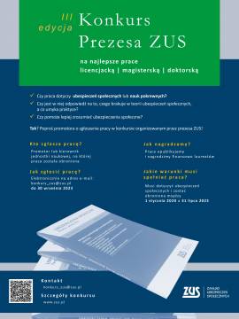 w trzeciej edycji Konkursu Prezesa ZUS na najlepszą pracę licencjacką, magisterską oraz doktorską z zakresu ubezpieczeń społecznych.