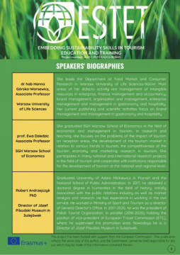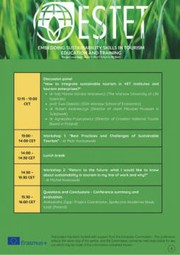 We would like to invite you to participate in the free international Final Conference of the Erasmus+ ESTET project entitled "Education & Training for Sustainable Tourism in Europe", which will take place on 1 December 2022 in the University of Social Sciences at 11 Lucka Street in Warsaw at 10 am.
