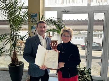 Dr hab. Roman Patora, prof. SAN Rektor Społecznej Akademii Nauk otrzymał podziękowanie od dyrektor IX Liceum Ogólnokształcącego im. Jarosława Dąbrowskiego za ogrom wsparcia w powstaniu w szkole ekologicznego oświetlenia zewnętrznego.