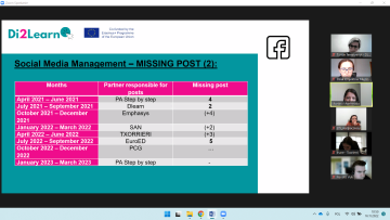 16 listopada partnerzy projektu Di2Learn: DISTANCE-DIGITAL TEACHING AND LEARNING IN THE POST-COVID-19 ERA spotkali się online by podsumować dotychczas zrealizowane aktywności i zaplanować kolejne etapy pracy nad realizacją projektu. Podczas spotkania podsumowaliśmy rezultaty 2 i 3, w ramach których powstały materiały edukacyjne dla nauczycieli, rodziców i uczniów, a także interaktywna platforma e-learningowa https://di2learn-academy.eu
