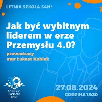 Chcesz być liderem, który wyprzedza swoją epokę? Dołącz do warsztatu online "Jak być wybitnym liderem w erze Przemysłu 4.0?" prowadzonych przez mgr Łukasza Kubiakai odkryj, jak nowe technologie mogą stać się Twoim atutem w zarządzaniu zespołami i organizacjami. W świecie, gdzie zmiany następują szybciej niż kiedykolwiek, umiejętność przewodzenia w cyfrowej rzeczywistości jest kluczem do sukcesu. Poznaj najnowsze trendy, rozwijaj swoje umiejętności przywódcze i ucz się od ekspertów, jak wykorzystać potencjał Przemysłu 4.0 w praktyce.