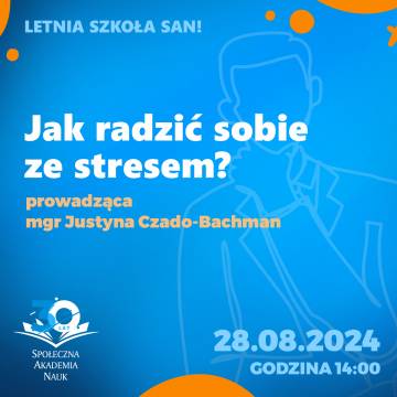 Czujesz, że stres przejmuje kontrolę nad Twoim życiem? Nie jesteś sam! Dołącz do warsztatu online "Jak radzić sobie ze stresem?" prowadzonego przez mgr Justynę Czado-Bachman i naucz się skutecznych strategii radzenia sobie z codziennymi wyzwaniami. W przyjaznej atmosferze poznasz techniki relaksacyjne, metody zarządzania czasem oraz narzędzia pomagające w utrzymaniu równowagi psychicznej. Zainwestuj w swoje zdrowie i dobrostan - znajdź wewnętrzny spokój i zyskuj energię do działania.