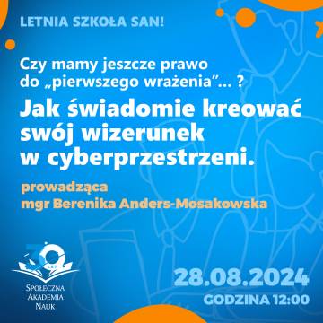 - Czy mamy jeszcze prawo do „pierwszego wrażenia”… ? Jak świadomie kreować swój wizerunek w cyberprzestrzeni.