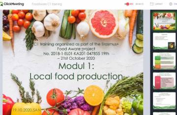 W dniach 19-21 października 2020 odbyło się szkolenie z projektu FOOD-AWARE. W związku z panującą pandemią zostało ono przeprowadzone online za pomocą platformy ClickMeeting.