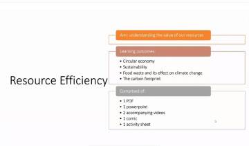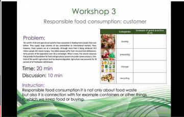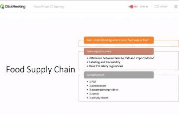 W ciągu trzech dni szkolenia partnerzy przedstawili wypracowane 5 modułów dotyczących: Local food production, Food waste, Food chain, Resource efficiency: sustainability and circularity oraz Responsible food consumption. Każdemu modułowi towarzyszyła prezentacja, arkusze ćwiczeń oraz związane z nim komiksy oraz plakaty. Ostatniego dnia szkolenia zostały przeprowadzone warsztaty nt. odpowiedzialnej konsumpcji. Uczestnicy mieli okazję skorzystać z aplikacji Jamboard, dzięki której możliwe jest urozmaicenie zajęć lekcyjnych.